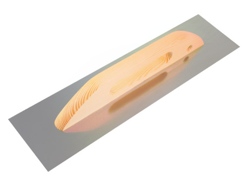 Описание: Зеркально отполированное полотно из нержавеющей стали 0,6 мм, широкая деревянная ручка из сосны, пропитанной воском. Применение: для равномерного распределения строительных растворов, смесей и клеев на большой по площади поверхности, подходит для работы двумя руками.