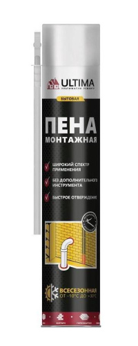 Бытовая монтажная пена Ultima подходит для всесезонных работ, она используется с целью заполнения пустот и герметизации швов. Обеспечивает теплоизоляцию и звукоизоляцию. Отлично справляется с монтажом технических коммуникаций и с установкой утеплительных материалов. Пена отличается увеличенным выходом, равномерной структурой и ускоренной полимеризацией, благодаря чему она пригодна для широкого спектра строительных и монтажных работ.