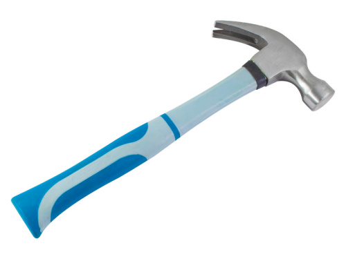 Головка молотка кованая, закалена и полностью отполирована. Обратная сторона бойка является гвоздодером. Фиберглассовая рукоятка.