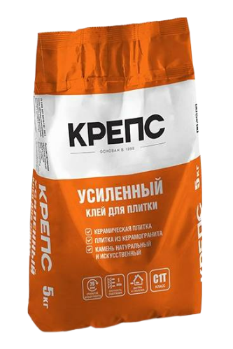 КРЕПС Усиленный – клей для керамической, клинкерной и керамогранитной плитки, плитки из искусственного камня.