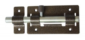 Засов накладной для деревянных и металлических дверей. Материал - сталь, полимерное покрытие. Габариты корпуса - 115х63 мм, 4 крепежных отверстия. Круглый ригель диаметром 13 мм с вылетом 30 мм. В комплекте ответная планка.