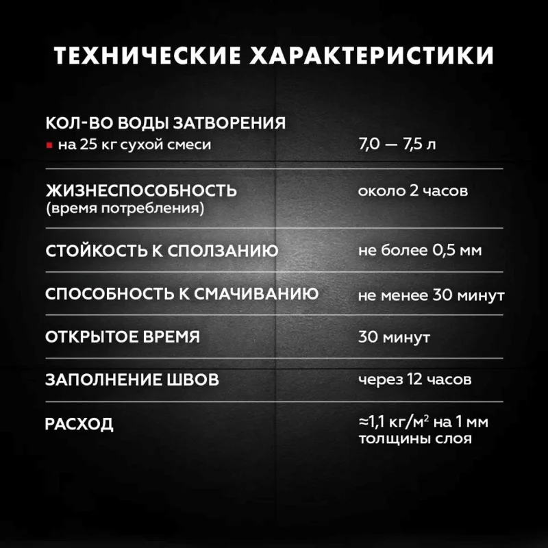 Благодаря высокой эластичности клей предотвращает возникновение скалывающих напряжений между плиткой и основанием при деформациях.