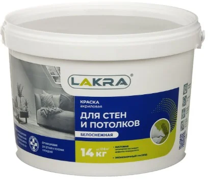 Эта водно дисперсионная краска от Лакры идеально подходит для покраски стен и потолков внутри помещений. Ее матовая текстура оптически скрывает дефекты поверхности, что делает ее отличным выбором для ремонта. Краска имеет экономичный расход, морозостойкая и легко наносится, не стекая с валика. Ее можно колеровать с помощью водных или универсальных колеровочных паст. Она также сертифицирована для использования в детских и медицинских учреждениях. Эта краска подходит для окраски стен и потолков в сухих внутренних помещениях.