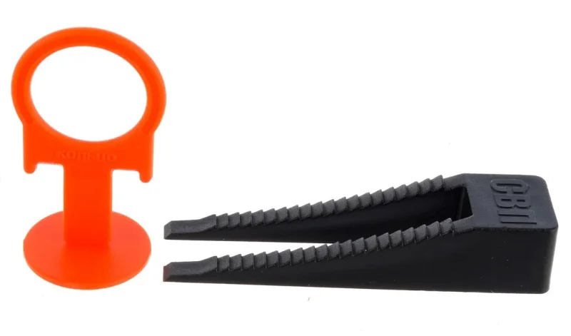 Комплектация включает в себя элегантно сконструированные зажимы и клинья, обеспечивающие надежную фиксацию плитки в процессе укладки. Кольцевые зажимы легко устанавливаются и удерживают плитку в стабильном положении, предотвращая её смещение. Клинья, входящие в комплект, позволяют регулировать высоту плит, гарантируя ровную поверхность без каких-либо неровностей.