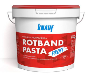 КНАУФ Ротбанд Паста ПРОФИ — готовая пастообразная финишная шпаклевка на виниловой основе. Обладает повышенной белизной, адгезией и трещиностойкостью. Применяется внутри помещений для финишного шпаклевания поверхности гипсокартонных или гипсоволокнистых листов, оштукатуренных и бетонных поверхностей, пазогребеневых плит, стеклохолста при подготовке под высококачественную окраску, оклейку обоями, перед нанесением венецианской штукатурки и других финишных материалов.