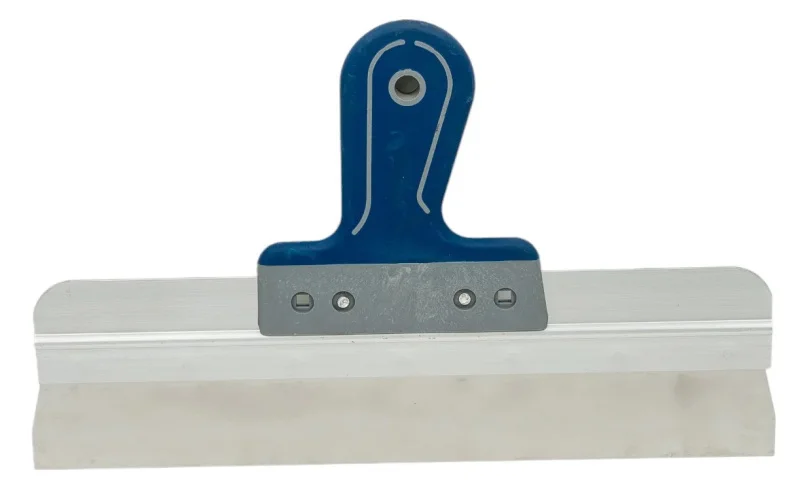 Фасадный шпатель с двухкомпонентной рукояткой, 350 мм РемоКолор 12-9-035 используется во время отделочных работ.