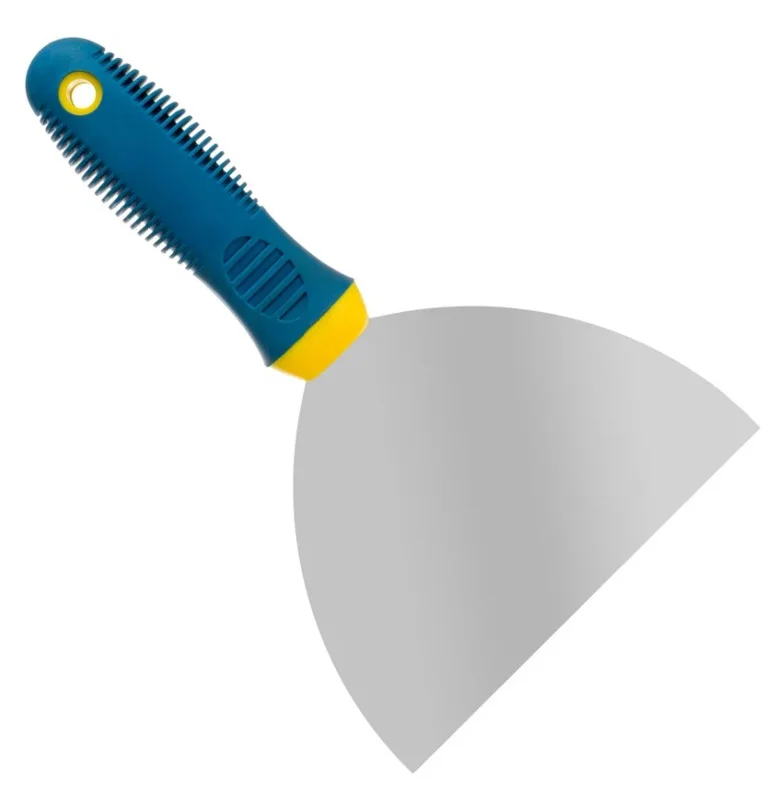 Нержавеющая сталь, полированная рабочая поверхность усиленного полотна, прорезиненная двухкомпонентная рукоятка. Применение: для нанесения строительных смесей, сглаживания и выравнивания шпаклевочного слоя.