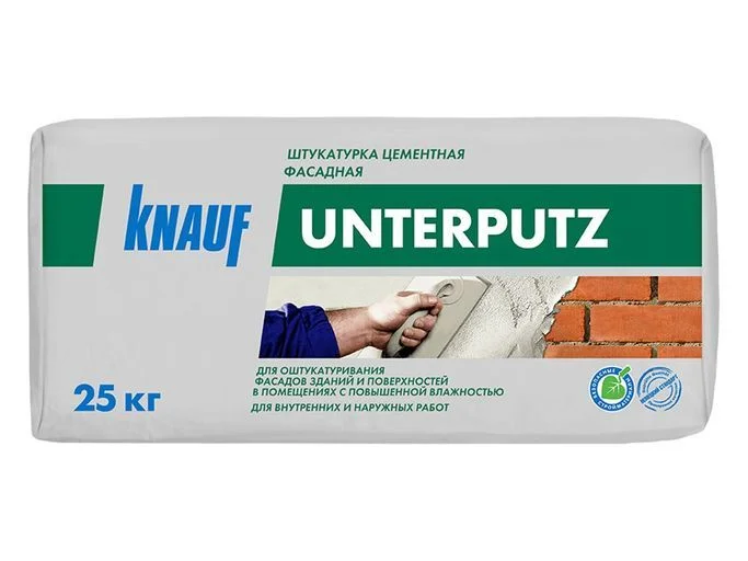 Смесь КНАУФ-Унтерпутц предназначена для высококачественного оштукатуривания фасадов и каменных, бетонных оснований в помещениях с повышенной влажностью (подвалы, прачечные, производственные помещения и т.п.) под последующее нанесение на них декоративных покрытий (декоративных штукатурок КНАУФ-Диамант, краски, облицовочной плитки и т.п.).