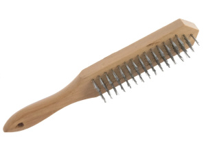 Щетина изготовлена из стальной проволоки и надежно закреплена в основании щетки. Используется для грубой зачистки рабочих поверхностей.