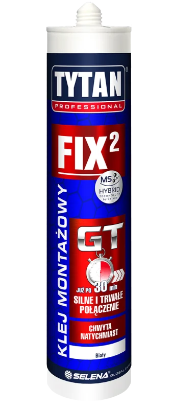 Монтажный клей Tytan Fix2 GT из гибридных полимеров применяется во внутренних и наружных работ и обеспечивает мгновенное начальное схватывание и ускоренное время отверждения. Клей рекомендован в работах с тяжелыми элементами и нестандартными поверхностями и подходит для склеивания широкого спектра материалов, включая кирпич, металл, камень, пенопласт, жесткий ПВХ, древесноволокнистые плиты, МДФ, мрамор, стекло и зеркала.