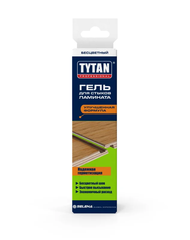 Гель герметик TYTAN Professional используется для герметизации стыков ламината. Он экономно расходуется и быстро высыхает. Производится этот герметик в Польше. Он имеет прозрачный цвет, что позволяет не оставлять пятен на поверхности ламината. Этот герметик предотвращает образование зазоров между панелями и защищает их от проникновения влаги, что продлевает срок службы напольного покрытия.
