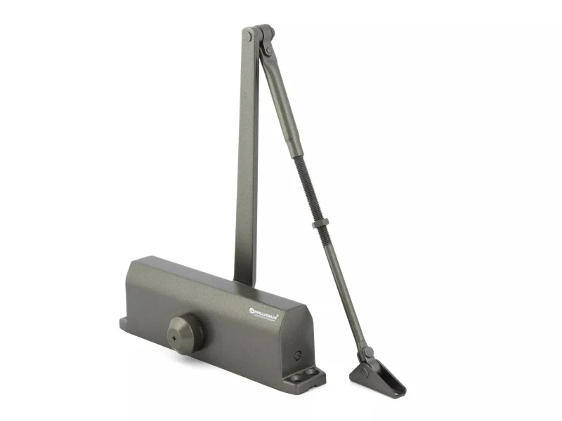Мощный доводчик под тяжелые двери: усиленные входные, подъездные, цеховые и др. Ограничения: масса полотна – 80-120 кг, габариты – до 1000*2400 мм.