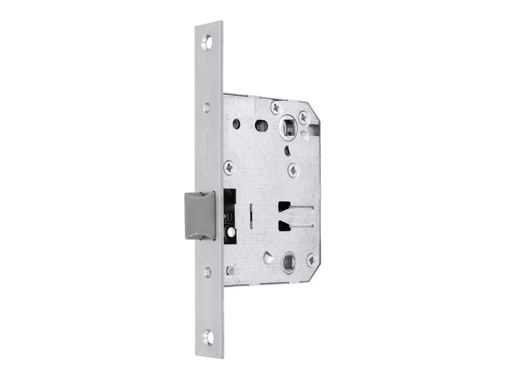 Бесшумный замок межкомнатный серии 470. Замок оснащен износостойким пластиковым язычком обеспечивающим бесшумное открывание и закрывание двери. Гарантированное количество циклов безотказной работы узлов замка более 200000. Качество гальванического покрытия подтверждено тестом на устойчивость в камере соляного тумана - более 96 часов.
