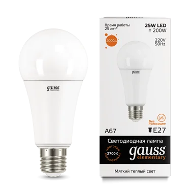 Светодиодные лампы GAUSS Elementary – это классическое решение, которое служит эффективной альтернативой традиционным лампам накаливания, позволяя экономить электроэнергию. В ассортименте представлены разные модели, которые дарят помещению мягкий, стабильный свет без мерцаний и обладают выдающимися техническими характеристиками, соответствующими европейским стандартам. В линейке можно найти варианты с различными формами, размерами и мощностями. Благодаря равномерному освещению создается комфортная атмосфера в любых условиях. Эта серия предназначена для широкой аудитории и предлагает оптимальное соотношение цены и качества.