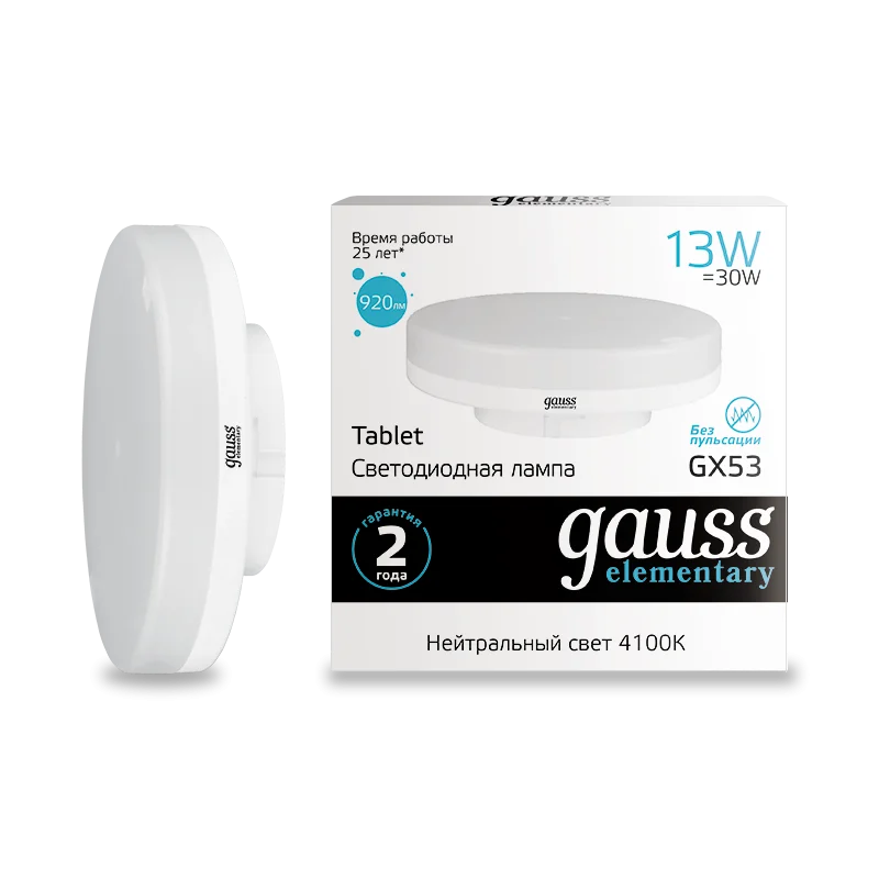 Лампа GAUSS LED Elementary GX53 – это превосходный выбор для использования на натяжных, подвесных и реечных потолках. Строгий дизайн и изящная простота прекрасно сочетаются с различными типами потолочных конструкций. Экономичное энергопотребление и отличные технические характеристики делают её привлекательной.