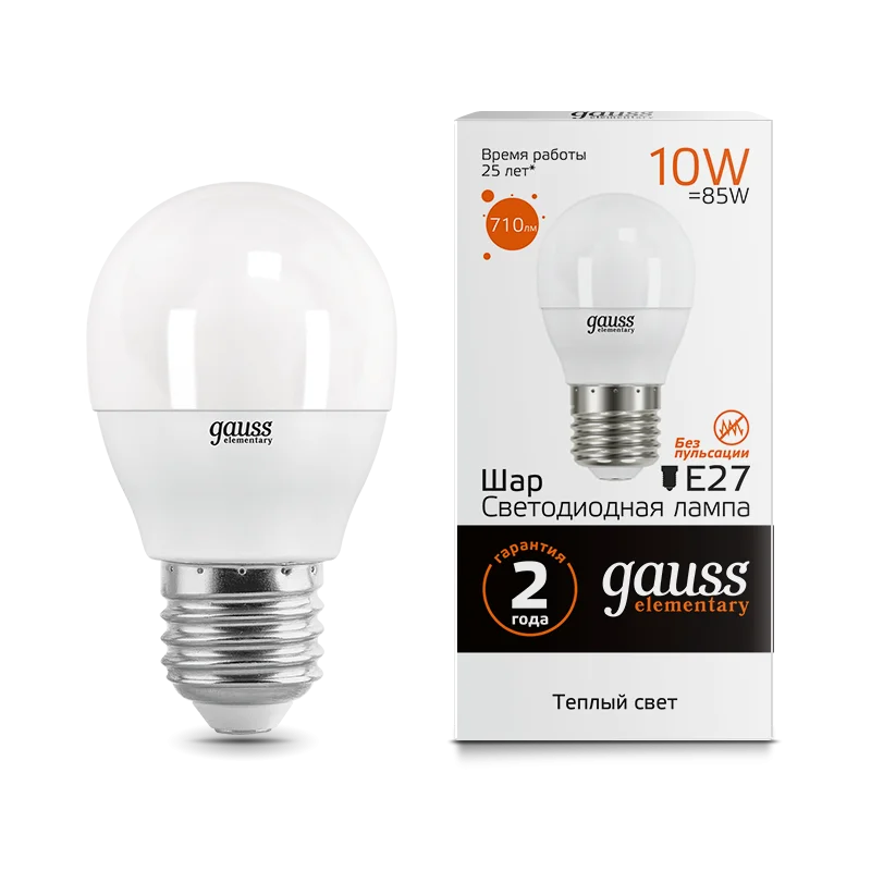 Светодиодные лампы GAUSS Elementary – это классическое решение, которое служит эффективной альтернативой традиционным лампам накаливания, позволяя экономить электроэнергию. В ассортименте представлены разные модели, которые дарят помещению мягкий, стабильный свет без мерцаний и обладают выдающимися техническими характеристиками, соответствующими европейским стандартам. В линейке можно найти варианты с различными формами, размерами и мощностями. Благодаря равномерному освещению создается комфортная атмосфера в любых условиях. Эта серия предназначена для широкой аудитории и предлагает оптимальное соотношение цены и качества.