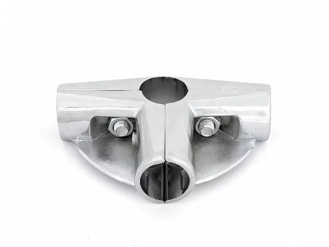 Угловой соединитель для четырех труб Ø25 мм с двумя площадками для полок, элемент систем «Джокер» и «Уно». Подойдет для сборки стеллажей, прилавков, навесных шкафов с полками из ДСП, пластика, стекла и других материалов.
