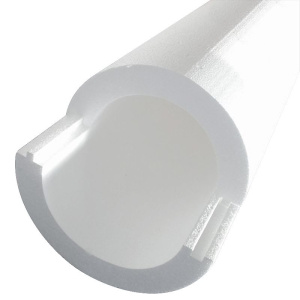 Жёсткие пенополистирольные полуцилиндры с продольными замками. Используются для теплоизоляции трубопроводов.