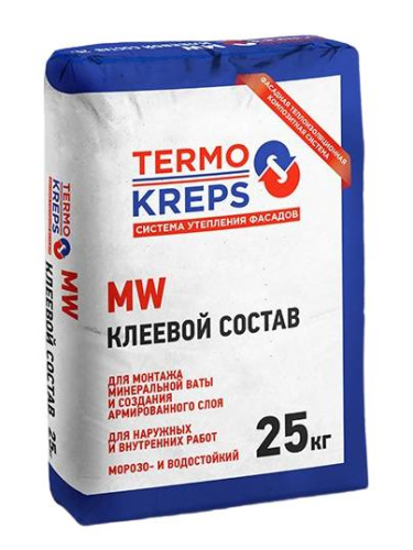 TERMOKREPS MW – клеевой состав на основе портландцемента и фракционированного кварцевого песка, модифицированный комплексом добавок.