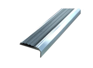 Противоскользящий угол-порог с резиновой вставкой используется для защиты кромки ступеней и обеспечения безопасности входных групп при гололеде.