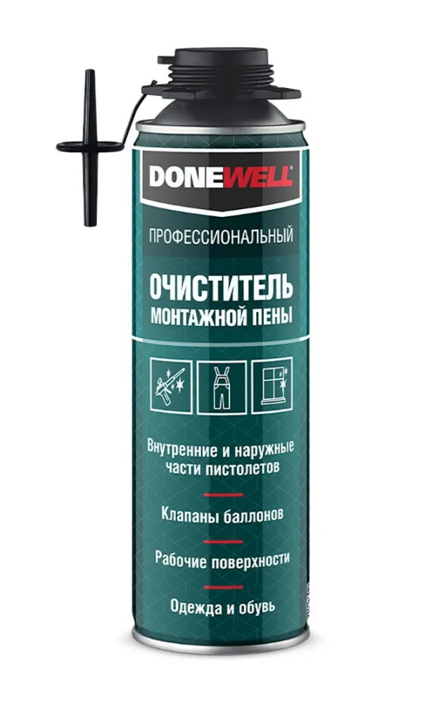DONEWELL предназначен для удаления загрязнений от незатвердевшей полиуретановой монтажной пены. Его легко наносить даже на труднодоступных местах, он экономичен и не требует специальных навыков для использования. С помощью средства можно эффективно очистить внутренние и внешние части пистолетов для монтажной пены, клапаны баллонов, рабочие поверхности и одежду