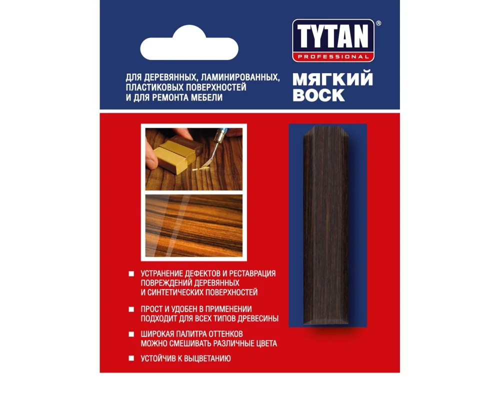 Воск Tytan Professional это универсальное решение для устранения дефектов на мебели и различных ламинированных поверхностях. Обладая мягкой консистенцией, он идеально подходит для заполнения царапин, трещин, сколов, потертостей, швов, поврежденных углов и кромок на мебели, ламинате, пластике, ДСП, а также натуральной древесине, которые не подвергаются сильной нагрузке. Воск Tytan Professional обеспечивает надежную защиту поверхности и сохраняет ее эстетический внешний вид. Благодаря своей универсальности, он гарантирует превосходный результат в любых ситуациях.