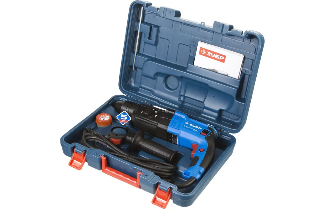 Перфоратор Зубр Профессионал SDS-Plus ЗП-26-800 К обладает тремя основными режимами: обычное сверление, сверление с ударом и долбление. Кроме того, предусмотрен режим поворота долота. Переход между режимами осуществляется с помощью удобного переключателя. В комплект входит дополнительная рукоятка для надежного удержания. Перфоратор поставляется в кейсе, что облегчает его хранение и транспортировку.