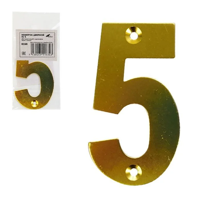Номерок дверной ЧИБИС мет №5 (зол) 75*45мм с комплектом крепежа