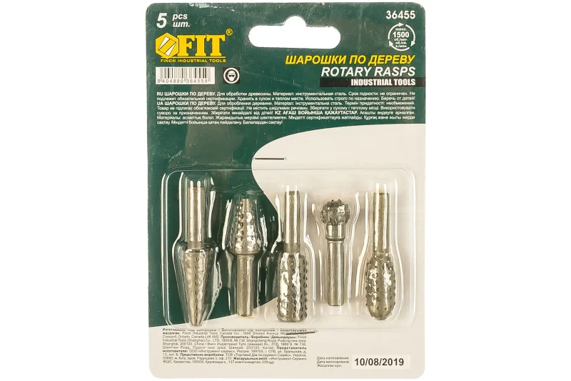 Технические характеристики металлических шарошек для фигурных отверстий по дереву FIT 36455