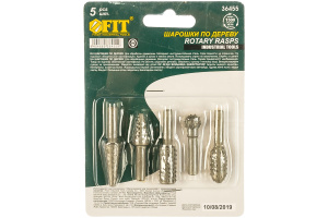 Шарошки для фигурных отверстий по дереву, 5 шт. FIT IT 36455 используются для обработки изделий из дерева с помощью прямошлифовальной машины.