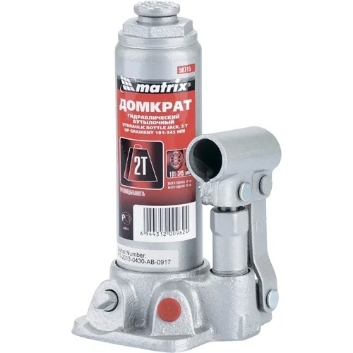 Гидравлический домкрат Matrix MASTER с клапаном безопасности предназначен для подъема груза массой до 2 тонн.