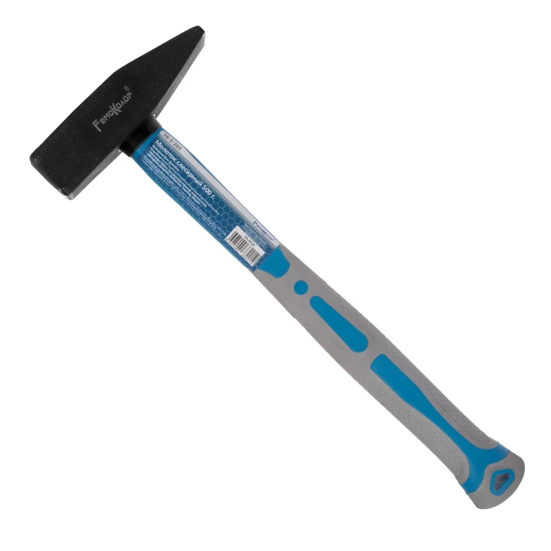 Головка молотка кованая, закалена, покрыта черным водным лаком и отшлифована, фибергласовая рукоятка.