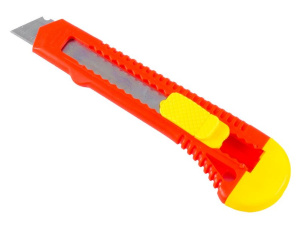 Острый нож РемоКолор 19-0-003 с выдвигающимся лезвием шириной 18 мм используется для быстрой резки картона, пленок, бумаги и прочих материалов, для которых не требуется применения более мощных режущих инструментов. Для удобной эксплуатации он оснащается автоматическим фиксатором  лезвия. Лезвие из углеродистой стали 60Г.