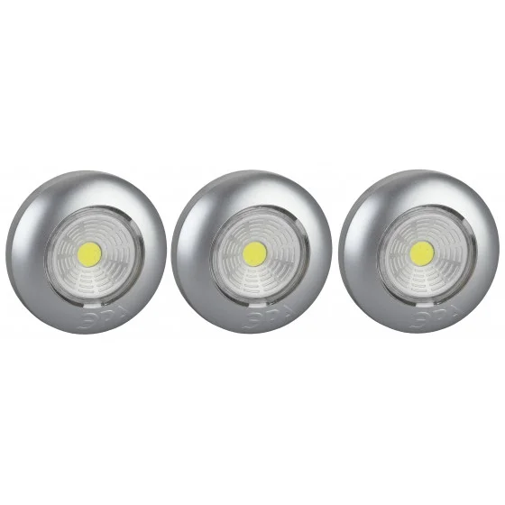 Фонарь имеет серебристый цвет и является простым многофункциональным светильником, который не нуждается в проводах или розетках. В комплект входят 3 фонаря с лёгкой установкой и энергосберегающей конструкцией, что делает этот набор универсальным. Он может использоваться не только как подсветка или аварийный свет, но и как ночной светильник.