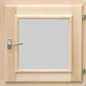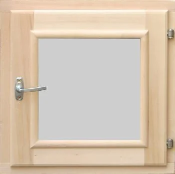Окно предназначено для вентиляции и освещения банного помещения. Оконный блок изготовлен из древесины осины, вставка из каленного двойного стеклопакета, выдерживает высокие температуры парной, имеет высокую тепло и звукоизоляцию, препятствует образованию конденсата. Форточки устанавливают в раздевалке, предбаннике и моечной комнате.
