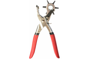 Дырокол-пробойник FIT 67425 обладает прочной стальной конструкцией. Удобные рукоятки оснащены пластиковыми накладками, что обеспечивает комфорт во время работы. Данный инструмент используется при отделке кожаных, текстильных и пластиковых изделий. Диаметры пробиваемых отверстий: 2-2,5-3-3,5-4-4,5 мм.