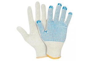 Перчатки универсального применения для защиты рук от общих производственных загрязнений и истирания, а также сохраняют высокую чувствительность рук. Пряжа изготовлена из хлопка с добавлением полиэстровой (полиэфирной) нити, увеличивающей прочность перчаток. Полимерное покрытие "точка" улучшает сцепные свойства и укрепляет наладонную часть.