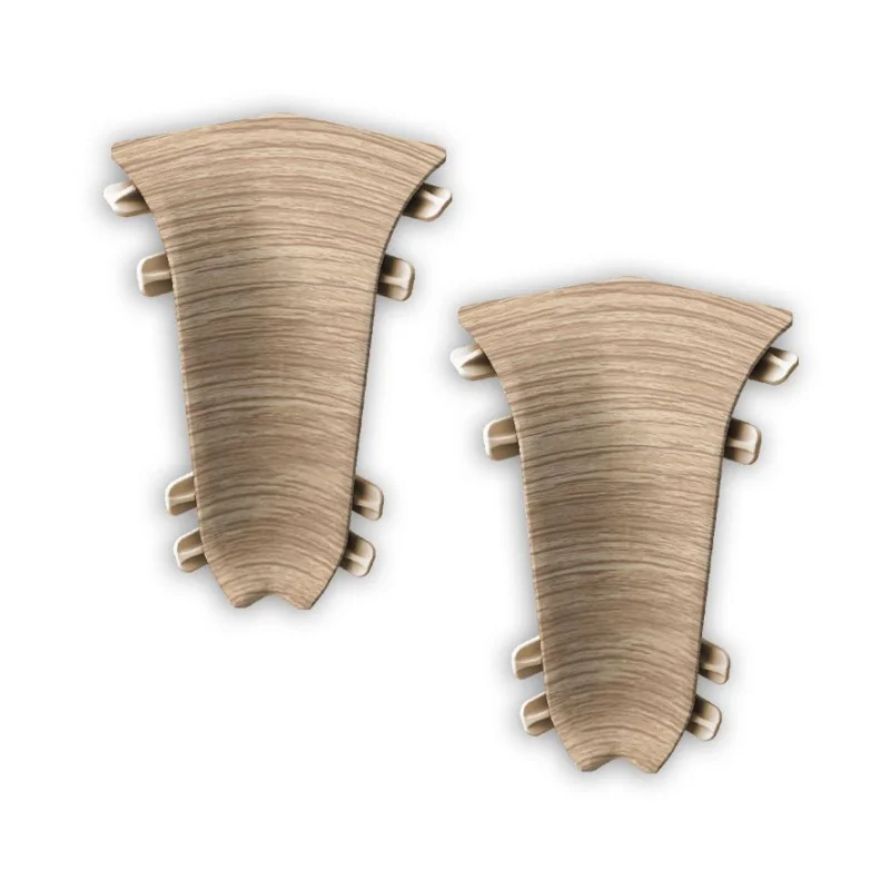 Внутренний уголок устанавливается на стыке двух отрезков напольного плинтуса, которые соединяются в углу комнаты. Он выбирается в зависимости от цвета и размеров плинтуса.