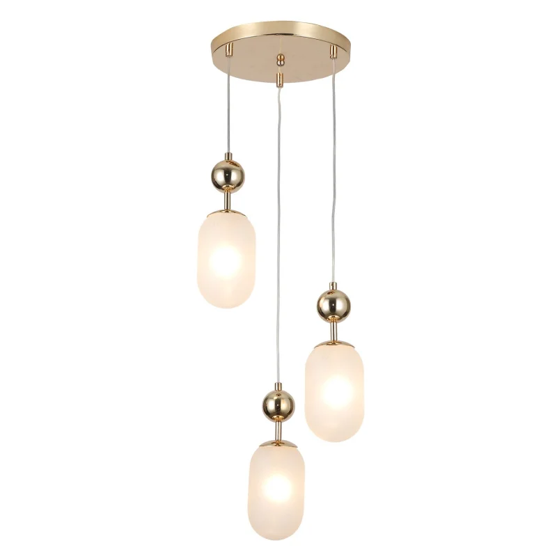 Подвесная люстра G31008/3GD WT от бренда Gerhort. Каркас выполнен из материала металл, цвет золото. Плафоны (светорассеиватели) выполнены из материала стекло, цвет белый. Цоколь E14 рассчитан на лампы максимальной мощности до 60 Вт, а максимальная площадь освещения составит до 7 м².