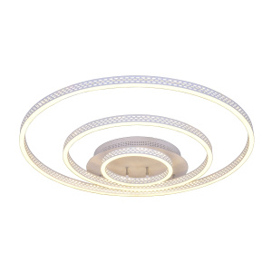 Потолочный светильник 50504/3WT WT в современном стиле от бренда ЭкономСвет. Каркас выполнен из материала металл, цвет белый. Плафоны (светорассеиватели) выполнены из материала акрил, цвет белый. Встроенные LED модули на 72 Вт осветят до 29 м². Свет теплый, мягкий.