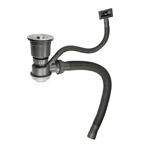 Сифон для мойки большая горловина с переливом, с отводом под сливной шланг и со съёмной корзинкой для мусора. Гофра 65 см