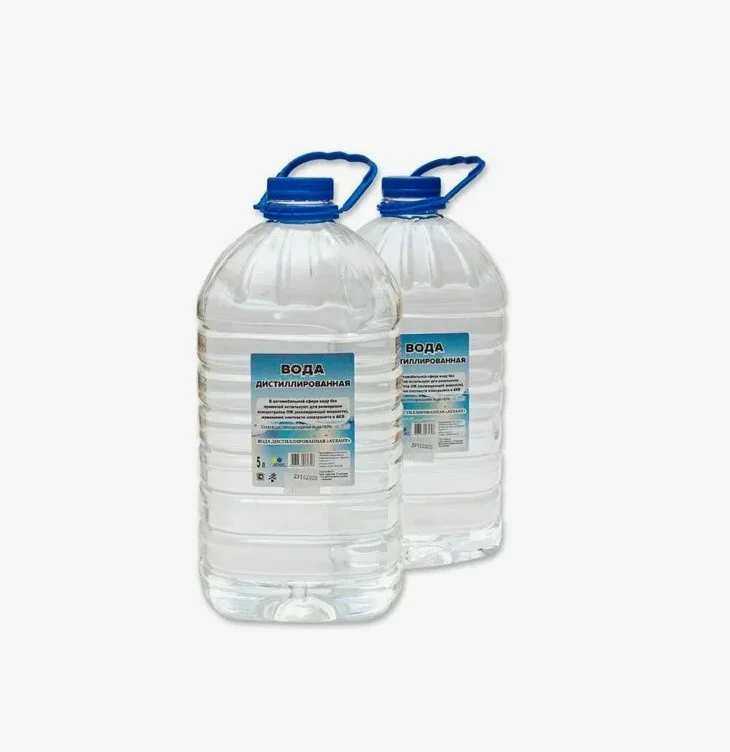Дистиллированная вода для системы отопления выпускается объемом 5 л. При покупке этого теплоносителя учитывайте, что антикоррозионные свойства отсутствуют.