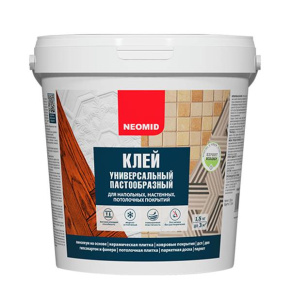 Универсальный клей Неомид является высококачественным клеящим средством, предназначенным для проведения отделочных работ. С его помощью можно склеивать различные материалы на бетонных, оштукатуренных, деревянных, гипсокартонных, древесно-стружечных, асбестоцементных и других основаниях. Отличается повышенной клеящей способностью, он обеспечивает надежное и прочное склеивание материалов, предотвращая их отслаивание и растрескивание. Пластичный и удобный в работе, что позволяет легко наносить его на склеиваемые поверхности.